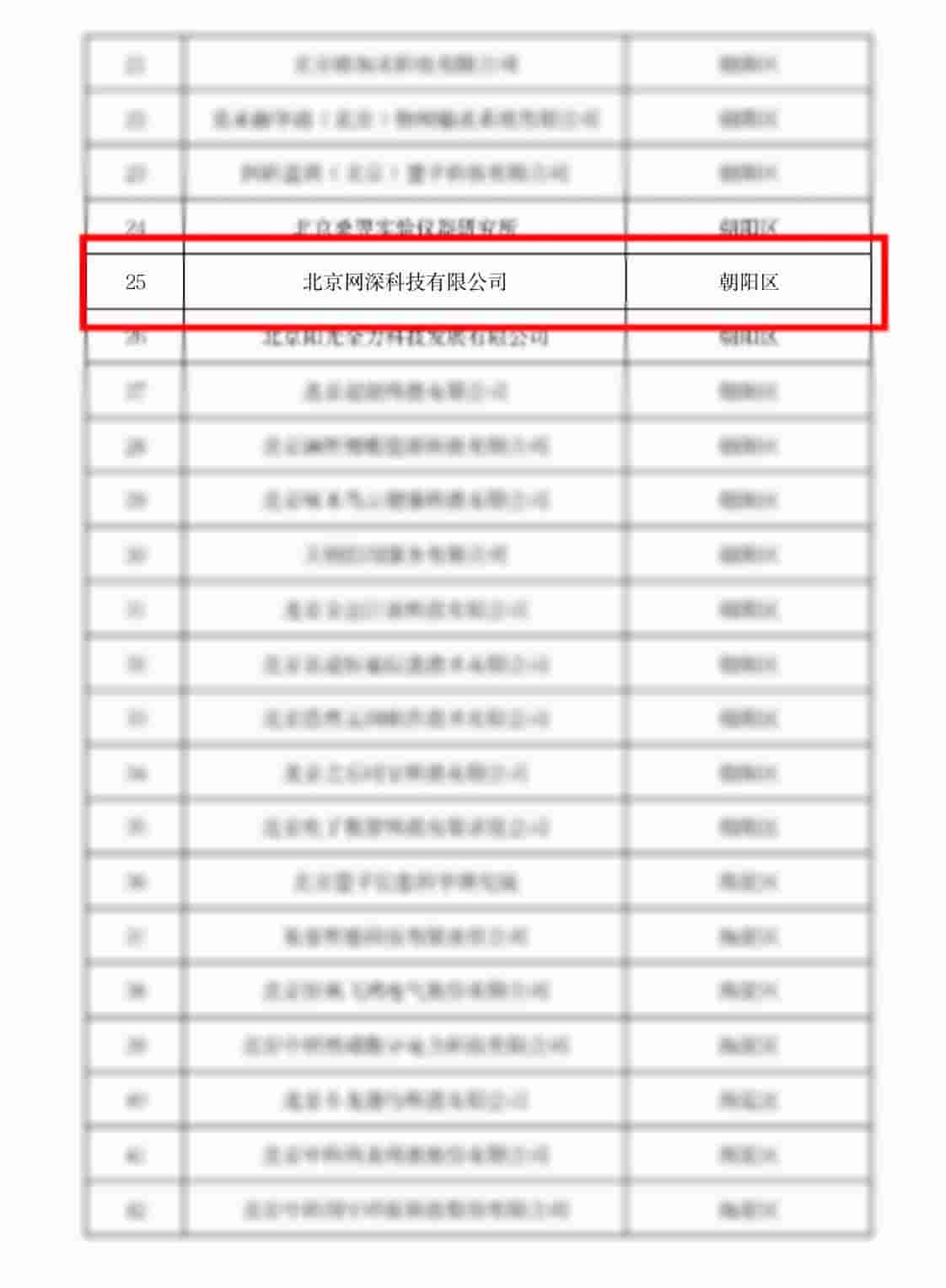 图:2025年度北京市知识产权试点单位名单(节选),网深科技位列其中