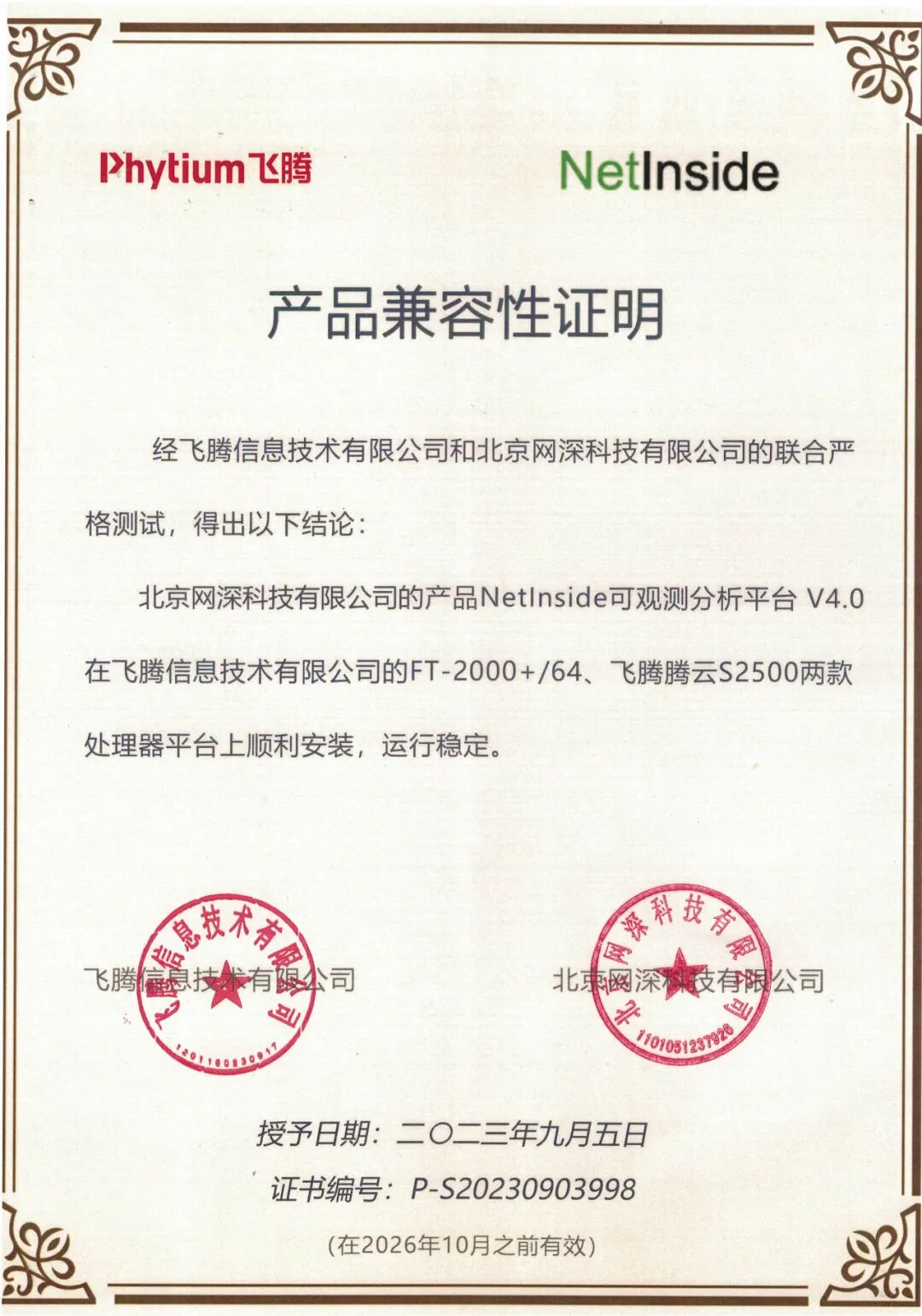 网深科技的产品NetInside可观测性分析平台与国产飞腾FT-2000+/64、飞腾腾云S2500两款处理器完成兼容性适配,经过双方共同测试,双方产品相互良好兼容,功能完整易用,性能卓越,能满足了用户功能、性能和可靠性要求。双方将在国产化的背景下,为推动信创产业发展,加速数字化转型提供安全保障。
