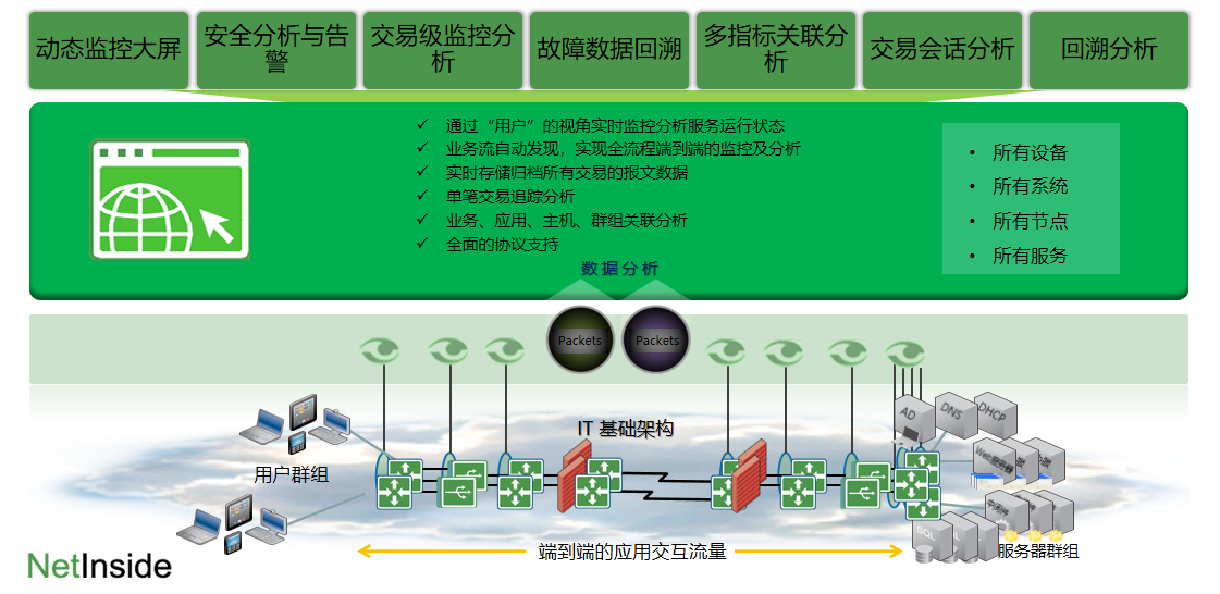作为全流量旁路采集与网络应用性能监测领域的专业厂商,NetInside 深耕行业十余年,自主研发了 NPM 网络应用性能管理、NetInside 全流量回溯系统、可观测性分析平台等核心产品,形成了“采集-解析-分析-回溯-可视化”的全流程解决方案。